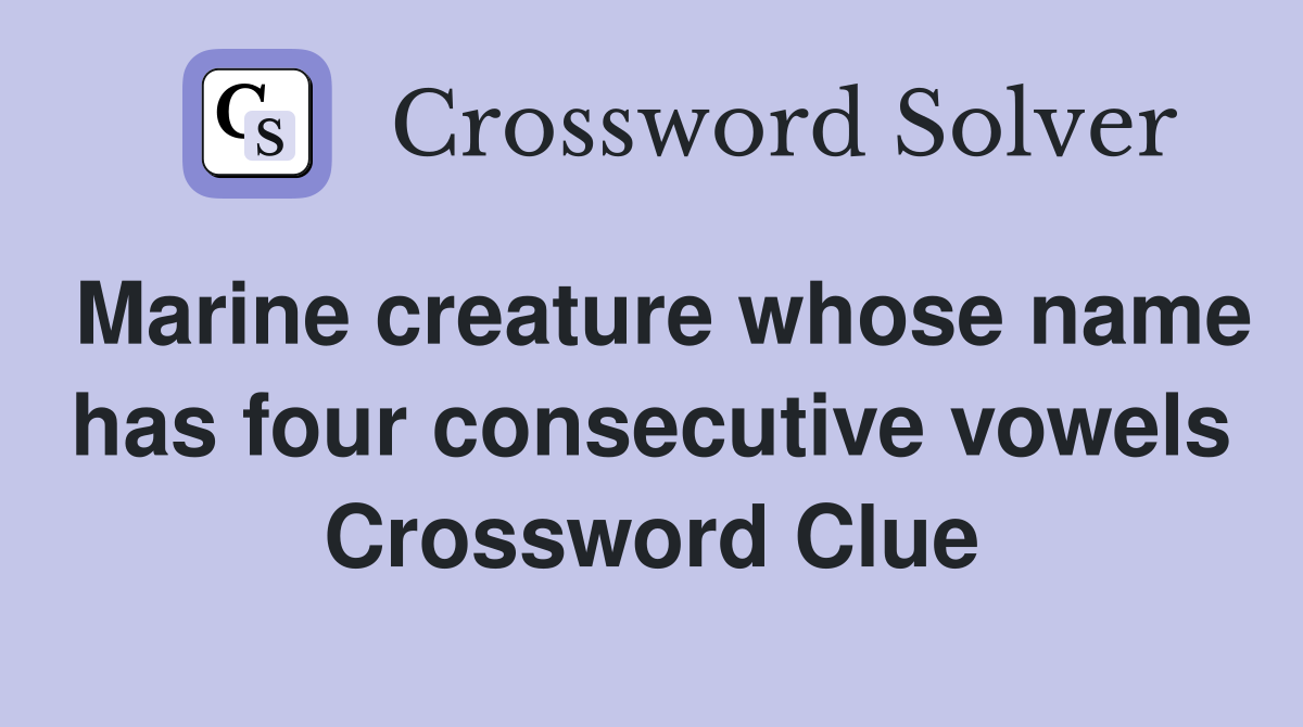 Marine creature whose name has four consecutive vowels Crossword Clue