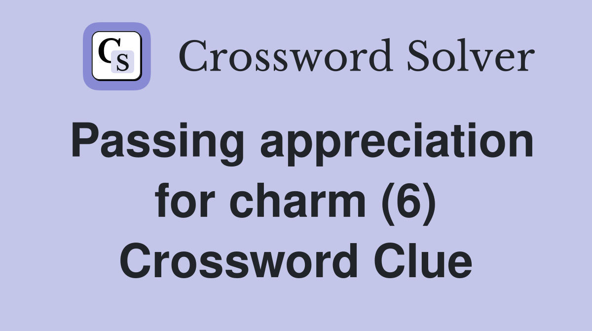 Passing appreciation for charm (6) Crossword Clue Answers Crossword