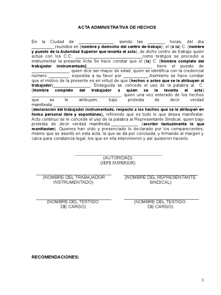 Introducir 63+ imagen modelo acta administrativa laboral Abzlocal.mx