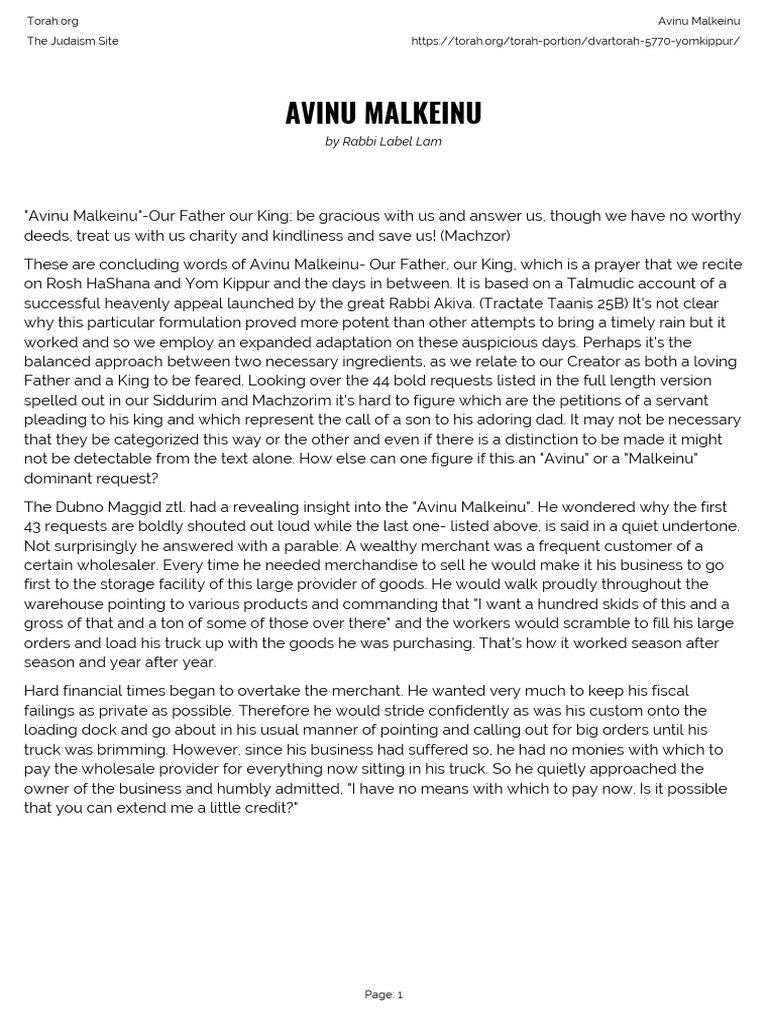Our father, our king), a litany recited during the *ten days of penitence and, in some rites, on fast days. Avinu malkeinu, egalitarian version by congregation mishkan shalom in philadelphia. Avinu malkeinu — literally “our father, our king” — is part of the high holidays liturgy. The prayer asks god to treat us with righteousness and. Our father, our king,.