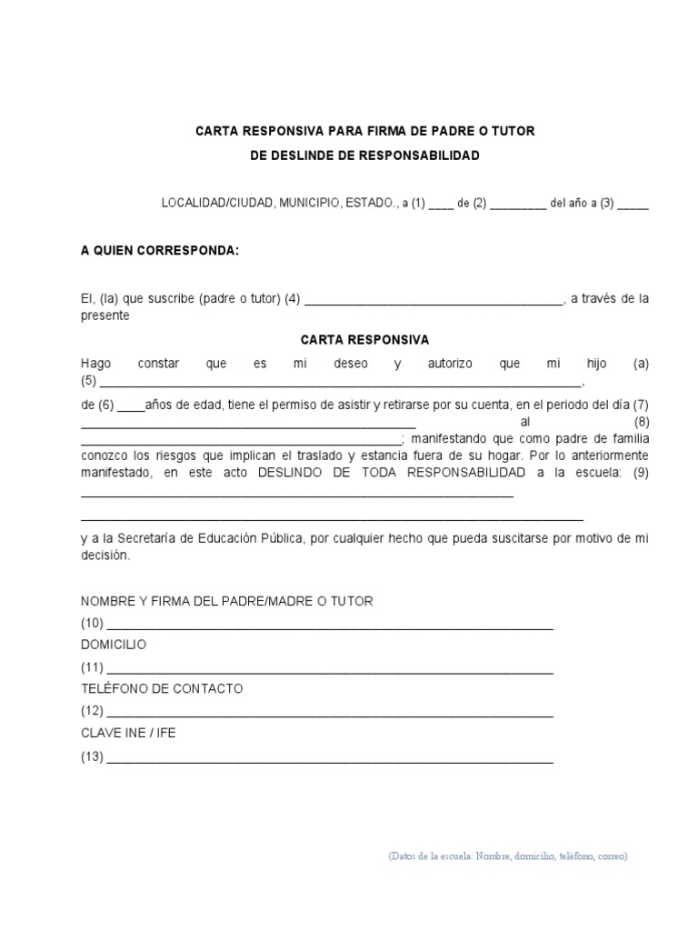 Carta De Deslinde De Responsabilidades Images and Photos finder