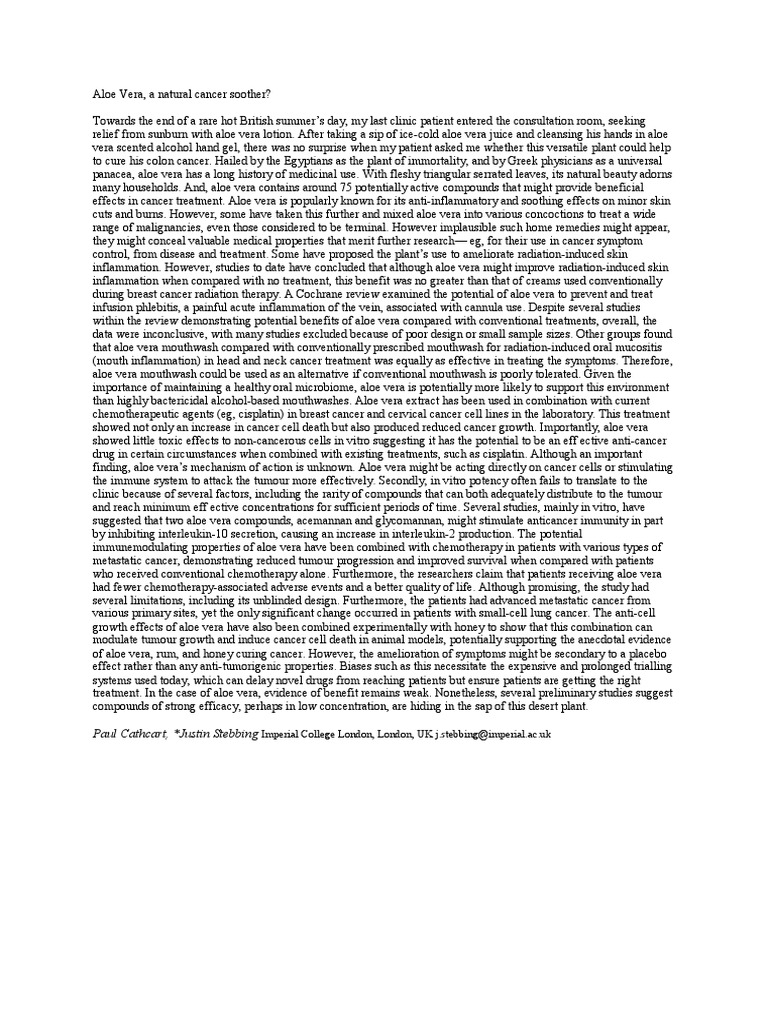Aloe Vera Final Word PDF Cancer Chemotherapy