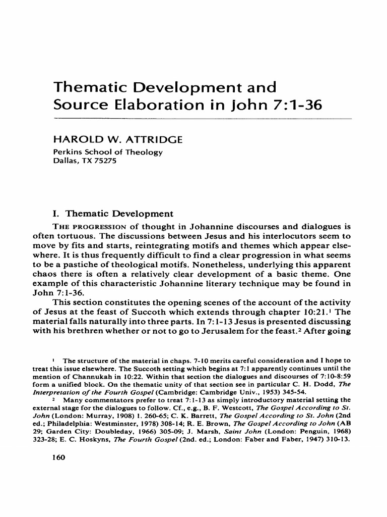 Attridge, Thematic Development and Source Elaboration in John 7,136