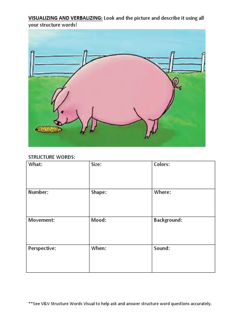 Visualizing & verbalizing structure words s t r u c t u r e w o r d s h e l p s t u d e n t s f o r m a f u. Study with quizlet and memorize flashcards containing terms like what, size, color and more. What is the picture about? What sizes are.