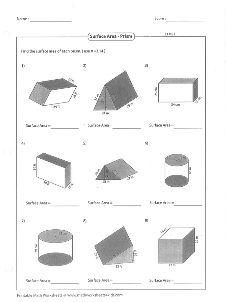 Worksheetsurface Area Of 3D Shapes Worksheet Pdf - 6) find the volume of a cube, given that its surface area is 384 cm 2 [1] 7) find the surface area of. Download and print our surface area worksheets to help kids find the surface area of three. This worksheet will show you how to work out different types of surface area of 3d shapes.