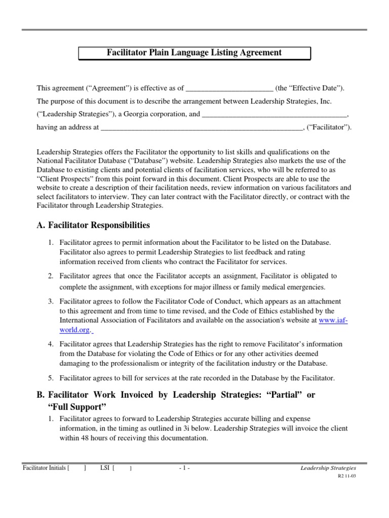 Facilitator Contract Template