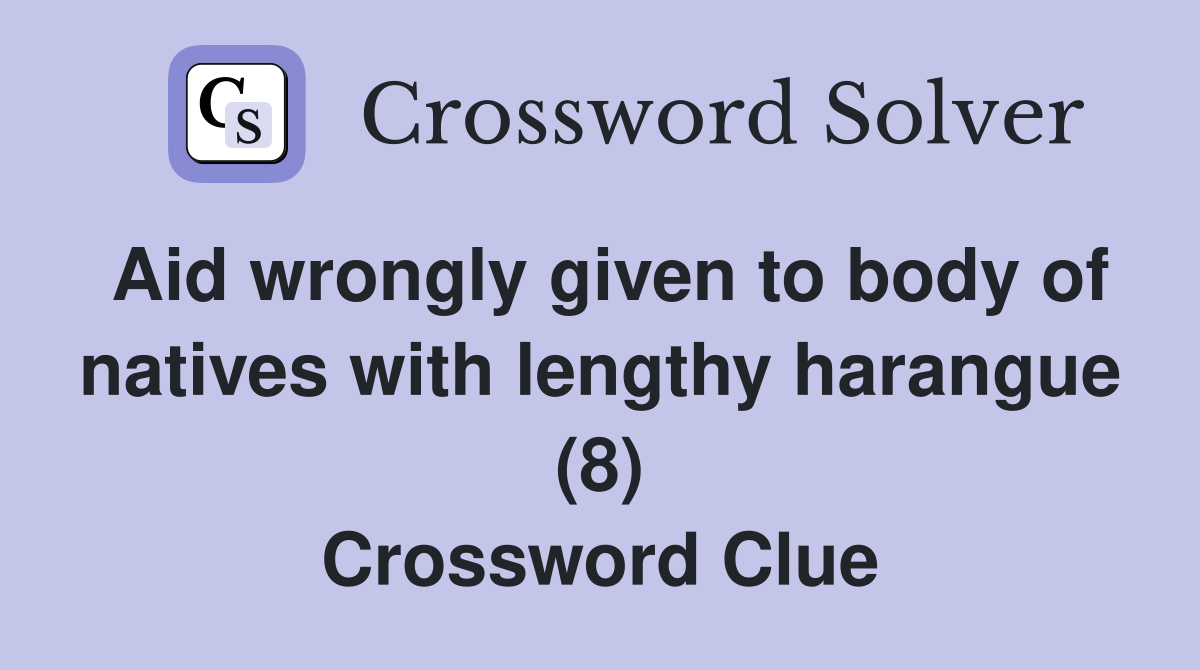 The crossword solver finds answers to classic. See 4 possible solutions and email us if you have. The crossword solver found 30 answers to wrongly, 5 letters crossword clue. Here is the answer for the crossword clue wrongly last seen in universal puzzle. We have found 40 possible answers for this clue in our database.
