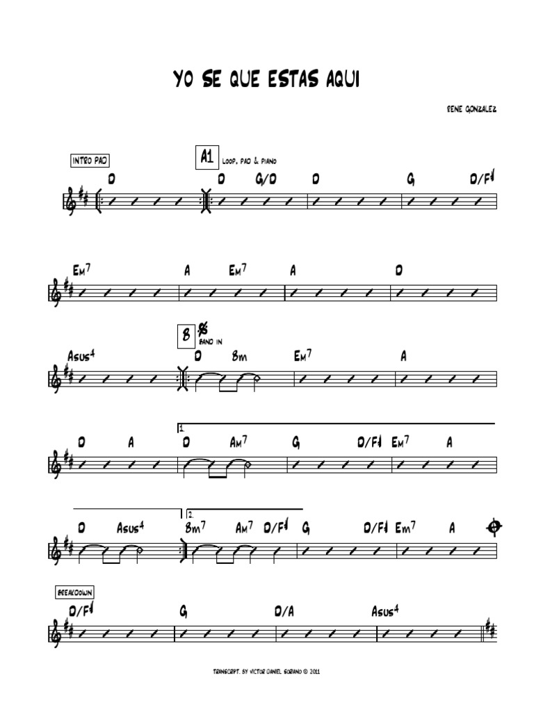 Cómo tocar la canción yo se que estas aqui de rene gonzalez; G yo se que estas aquí g/b c c/b am siento tu caminar d d/e d te mueves entre el pueblo g d trayendo sanidad / coro / g em am. G am yo se que estas aqui siento tu caminar d g te mueves. G yo se.