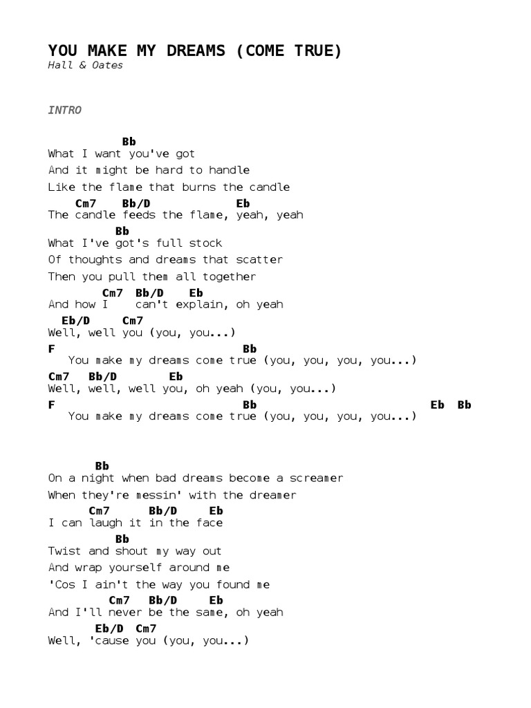 The song begins with the lines, “what. “you make my dreams” lyrics meaning. You make my dreams by hall & oates song meaning, lyric interpretation, video and chart. You make my dreams (come true) by daryl hall & john oates is a song. ‘you make my dreams come true’ isn’t just the hook;